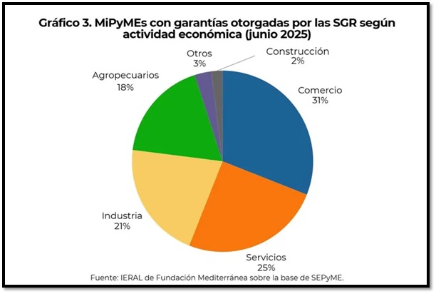 Los números son contundentes y vitales para las pymes: en mayo pasado, por caso, el sistema otorgó avales por el equivalente a u$s2.500 millones, con un fuerte sesgo hacia las firmas más chicas, según datos de la SEPyME. De hecho, 9 de cada 10 avales se destinan a micro y pequeñas empresas, y se estima que 1 de cada 3 préstamos pyme en la Argentina cuenta hoy con la cobertura de una SGR, de acuerdo con un relevamiento de Fundación Mediterránea. El reparto sectorial es diverso: en junio de 2025, el 31% de los avales fue al comercio, 25% a servicios, 21% a la industria, 18% al agro y 4% a la construcción, de acuerdo con SEPyME.