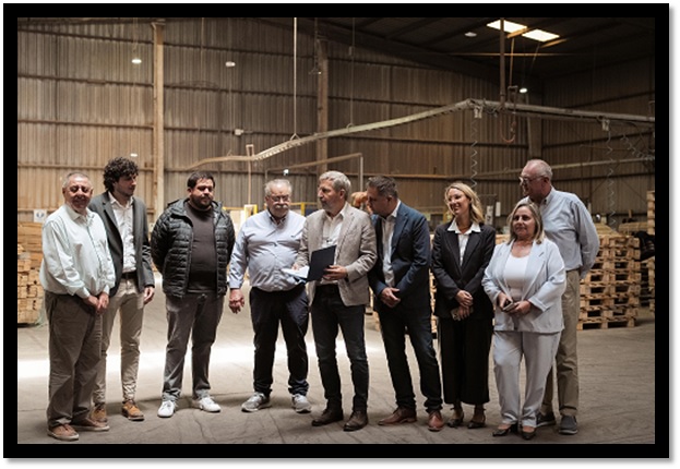 El gobernador Rogelio Frigerio visitó la empresa Palletizate, una firma familiar con base en el Parque Industrial de Gualeguaychú, que adhirió recientemente al Régimen de Incentivo a Nuevas Inversiones (RINI) provincial. Se especializa en el recupero, la fabricación y la comercialización de pallets de madera y emplea a 45 personas.