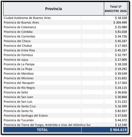 En ese sentido, un reporte que presentó el diputado de Unión por la Patria y extitular de la Aduana, Guillermo Michel, indica que en los primeros dos meses de 2026 la recaudación fiscal alcanzó los $34,56 billones. De ellos, el 37% ($12,9 billones) quedaron en la Administración Nacional y 32% ($11,1 billones) fluyó hacia las provincias.